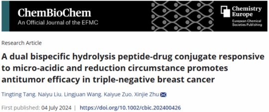 近日,bevictor伟德李松院士工作站(伟德体育)的朱新杰副教授团队,在Chemistry Europe出版集团旗下的经典期刊ChemBioChem上发表了标题为“A dual bispecific hydrolysis peptide-drug conjugate responsive to micro-acidic and reduction circumstance promotes antitumor efficacy in triple-negative breast cancer”的研究论文。文中设计并构建了一种能够对肿瘤微环境(弱酸性及还原性)双特异性响应水解释药的多肽偶联药物PAP-SS-PTX,并探究其在三阴性乳腺癌治疗中的作用机制。
