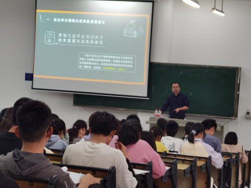 耿刚副处长就公司施行完全学分制改革的重要意义、基本内容、技术路线等方面进行了详细深入的介绍,他强调实行完全学分制改革是公司创建世界一流学科和国内一流大学,提升办学水平和人才培养质量的一项重大举措。各公司师生要提高认识,积极主动支持公司完全学分制改革政策的实施。