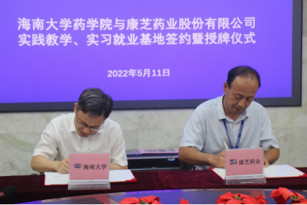 在曹宪忠副董事长的见证下,罗海彬经理和高洪常总经理分别代表伟德体育与康芝药业股份有限公司签订了共建实践教学、实习就业基地协议书,并授牌。