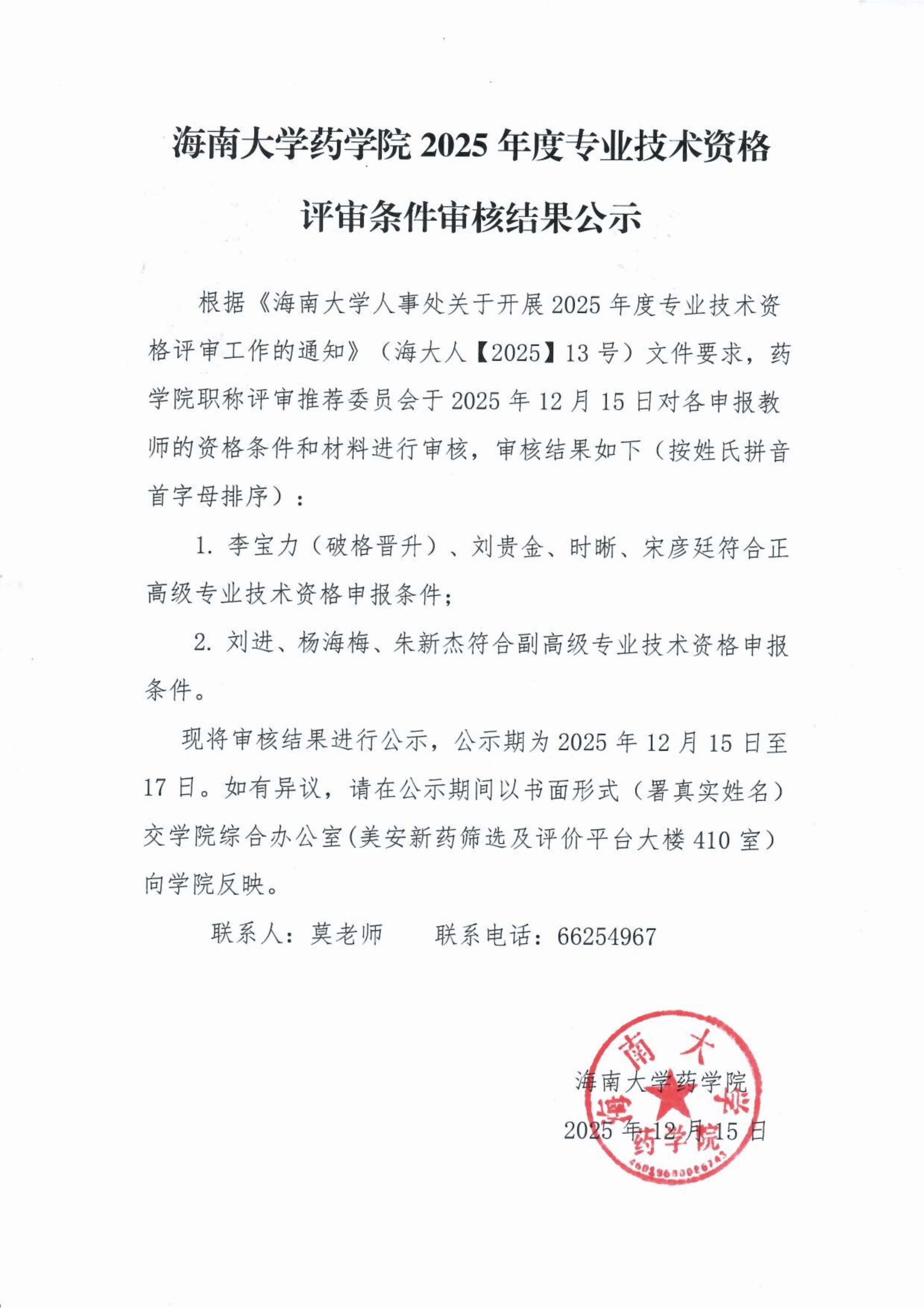2025年度专业技术资格评审条件审核结果公示
