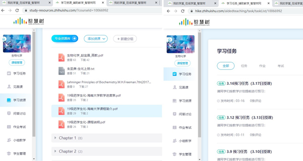 《生物化学》(海南联盟)为张老师参与主讲的一门海南高校精品在线开放课程。主讲教师均在教学一线长期讲授该课程,具有丰富的教学经验。课程设计合理,教学资源丰富,教学内容与本课程教学大纲要求相近,选择作为本课程的主要教学视频资源。但由于药学专业《生物化学》较《普通生物化学》有一定侧重点,另选择智慧树平台精品课程《生物化学》(天津中医药大学)作为辅助学习视频资源。张老师还创建了智慧树翻转课堂,克服共享课程教师无法上传相关教学资料的限制,在其中上传了本人的教学大纲,课程说明,教学计划,教学ppt,中文及英文版电子教材,相关视频等,供员工下载学习。