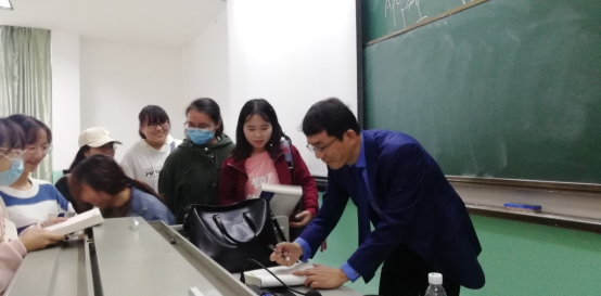图3 杨荣武教授给员工签名留念