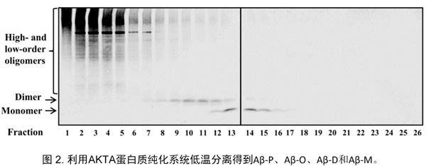 近日,生物学领域国际权威(Top)期刊《FASEB JOURNAL》 (BIOLOGY 1区;CELL BIOLOGY 1区;BIOCHEMISTRY & MOLECULAR BIOLOGY 1区;)发表了公司王大勇教授领衔的生物技术与分子药理学团队的研究论文Aβ monomer induces phosphorylation of Tau at Ser-214 through β-淀粉样蛋白(Aβ前体蛋白(APP)在γ分泌酶的作用下水解产生Aβ(A42β-P)、寡聚体(Aβ-M)的形式存在。在早期的研究中,研究人员认为A42多聚体在阿尔茨海默病的病理演变过程中发挥主要的致病作用,近年的研究主要集中在A42二聚体(Aβββββββββ-M)的病理生理学作用一直不十分清楚。王大勇博士与生物技术与分子药理学科研团队的骨干成员裴业春、韦双双以及博士研究生吴昊利用AKTA蛋白纯化系统在低温条件下分离得到A?标签等方法抑制A42聚集。