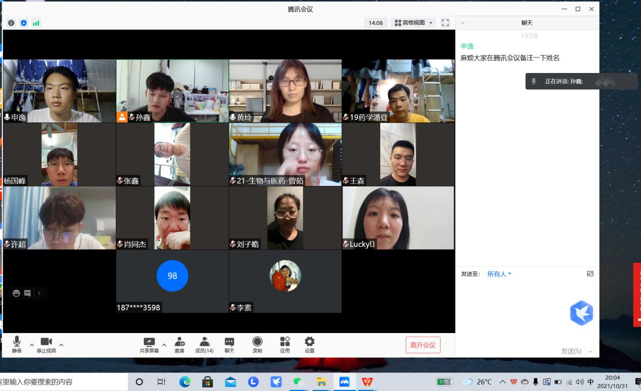 2021年10月31日晚上8点,伟德体育研究生党支部通过腾讯会议在线进行主题党日活动,活动由党支部书记黄玲主持,学习内容为《党课开讲啦》第3期节目—《党的伟大成就》,参会人员为全体研究生党支部成员15人。