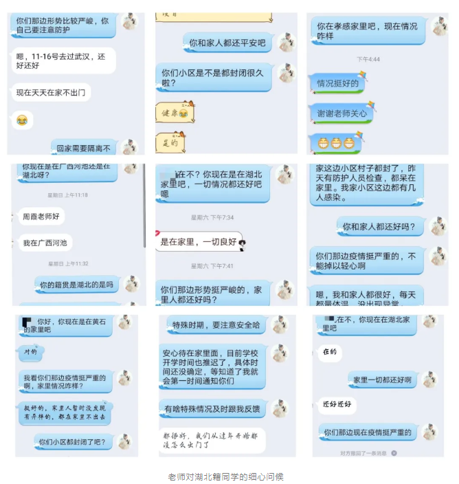 隔离病毒不隔离爱,疫情发生后,公司全体领导及老师坚守初心使命,践行岗位职责,他们的一通通电话、一声声问候、一篇篇网文、一个个线上活动,无不体现着对身在各地的员工的关心,他们以思想教育筑起疫情防控阻击战的青春长城。
