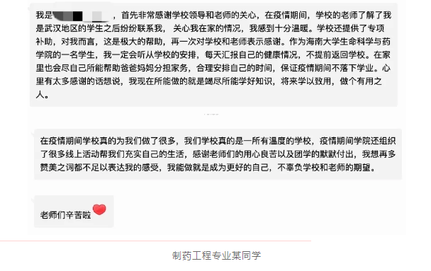 与此同时,这份爱是双向的,隔离病毒但不隔离爱,爱是最好的桥梁,它照亮且温暖了每个人的心,更传达了互相的祝福与心意。同学们感恩公司的热切关怀,向老师们表达自己的感谢,一句句暖心的话,虽远隔万里却让人感觉到心的距离在靠近。