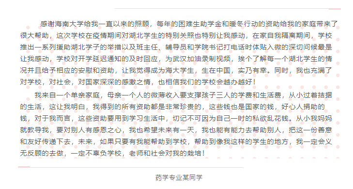 为落实党中央、国务院关于全力支持抗击新型冠状病毒感染肺炎疫情的工作部署,切实保障受疫情影响而导致家庭经济困难员工的学习生活,公司及时推出多项资助项目,公司及时通知员工申请,公平公正公开进行评审公示,努力为经济困难的同学向公司正确资助名额,最终,公司共45名湖北籍同学申请并获得湖北籍专项疫情资助,3名同学获得临时困难专项资助,15名同学获得路费补贴资助。