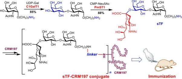 近日,伟德体育宗成利教授团队在英文期刊Bioorganic & Medicinal Chemistry(JCR二区,影响因子3.5)发表题为“Chemoenzymatic synthesis and immunological evaluation of sialyl-Thomsen-Friedenreich (sTF) antigen conjugate to CRM197”的研究论文,报道了一种基于肿瘤表面sTF抗原亚单位肿瘤疫苗的合成新方法,并研究了其免疫活性。